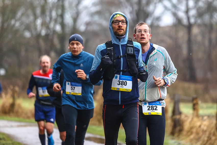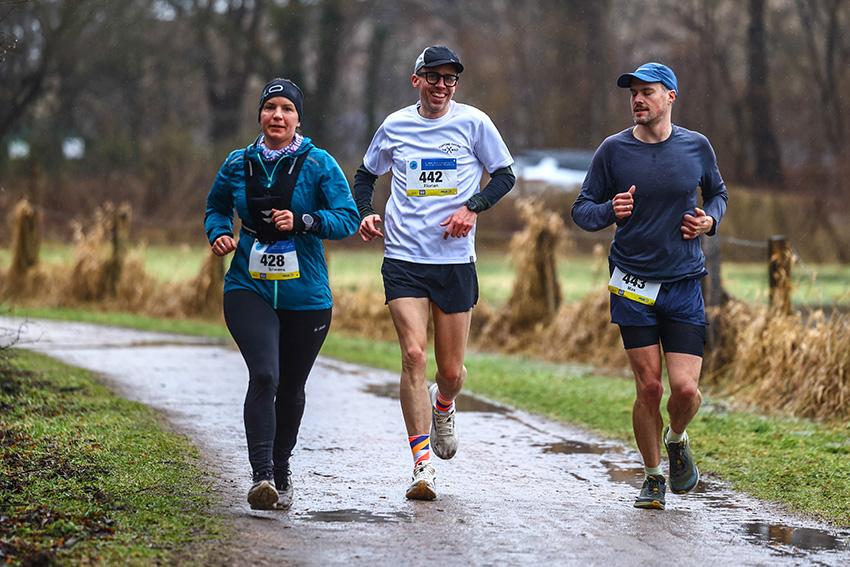 Doch immerhin konnte der Lauf diesmal stattfinden. Noch am Samstag waren die Wege in der Feldmark und am Gehege mit einer gefährlichen Eisschicht überzogen. Ein Lauf hätte unter den Umständen nicht stattfinden können. Der Dauerregen und die höheren Temperaturen verwandelten die Wege dann zwar in eine morastige Fläche, aber es konnte gelaufen werden.